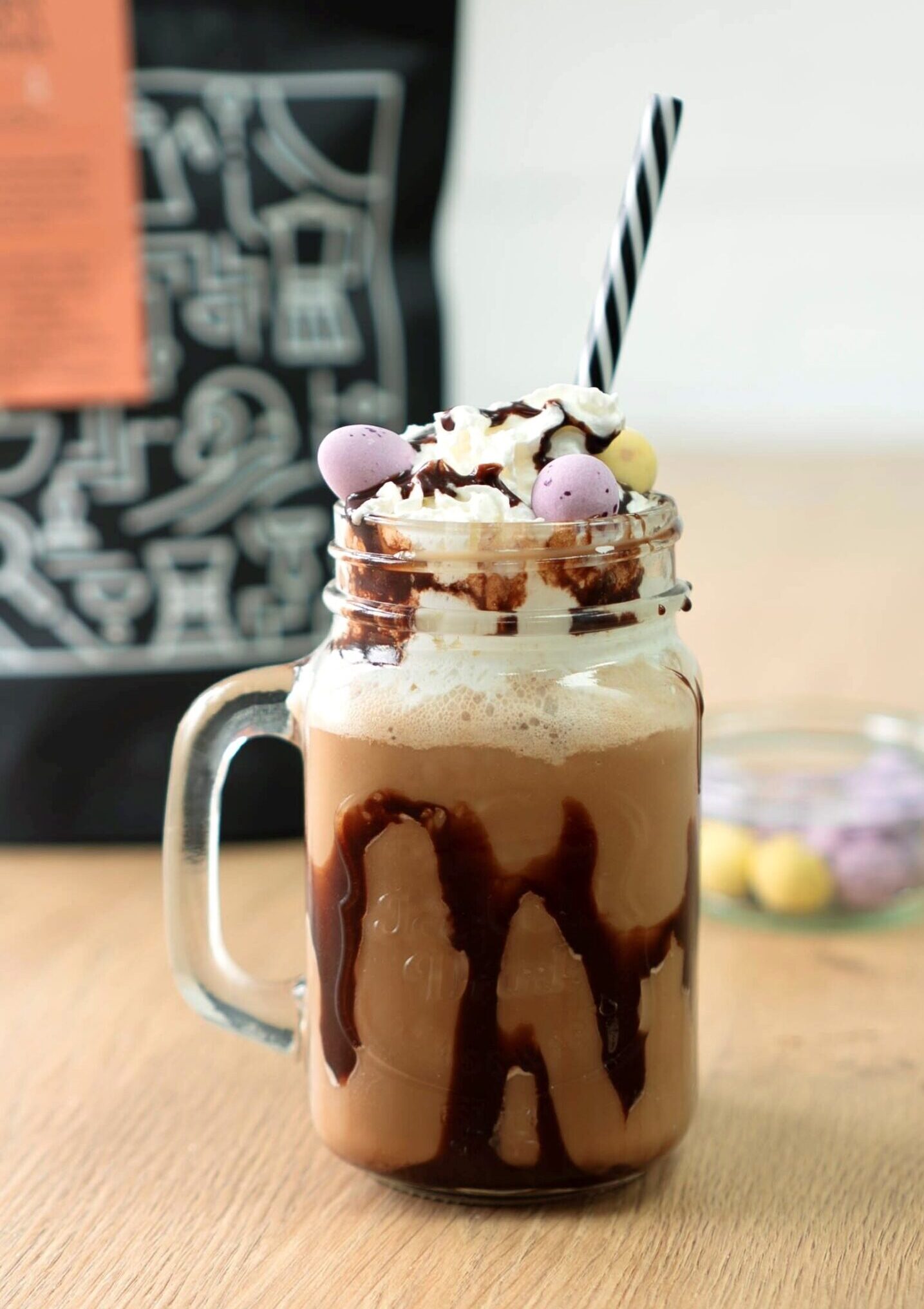 With a creamy milk chocolate centre encased in a thin, crunchy shell, it’s the light dusting of icing sugar that makes them truly unique and irresistibly delicious! When thinking about an Easter-themed frappe, mini eggs were the first chocolate that came to mind!
