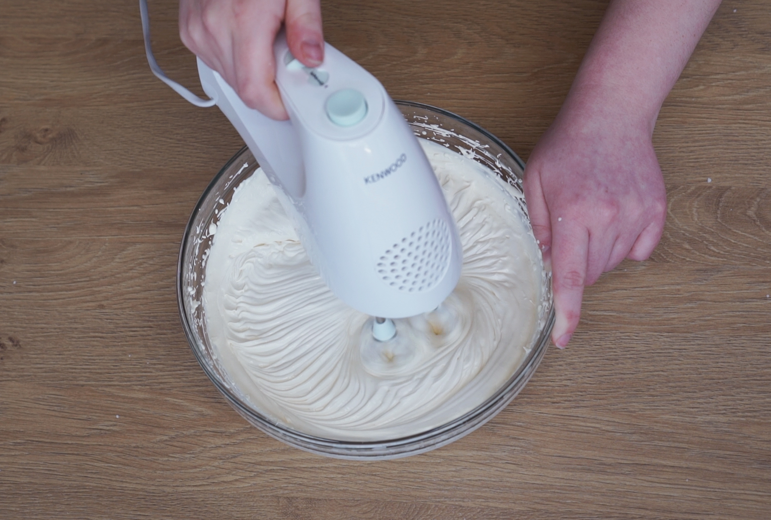 1. To a large bowl, add the cream cheese, caster sugar and honey. Whisk until pale and combined.