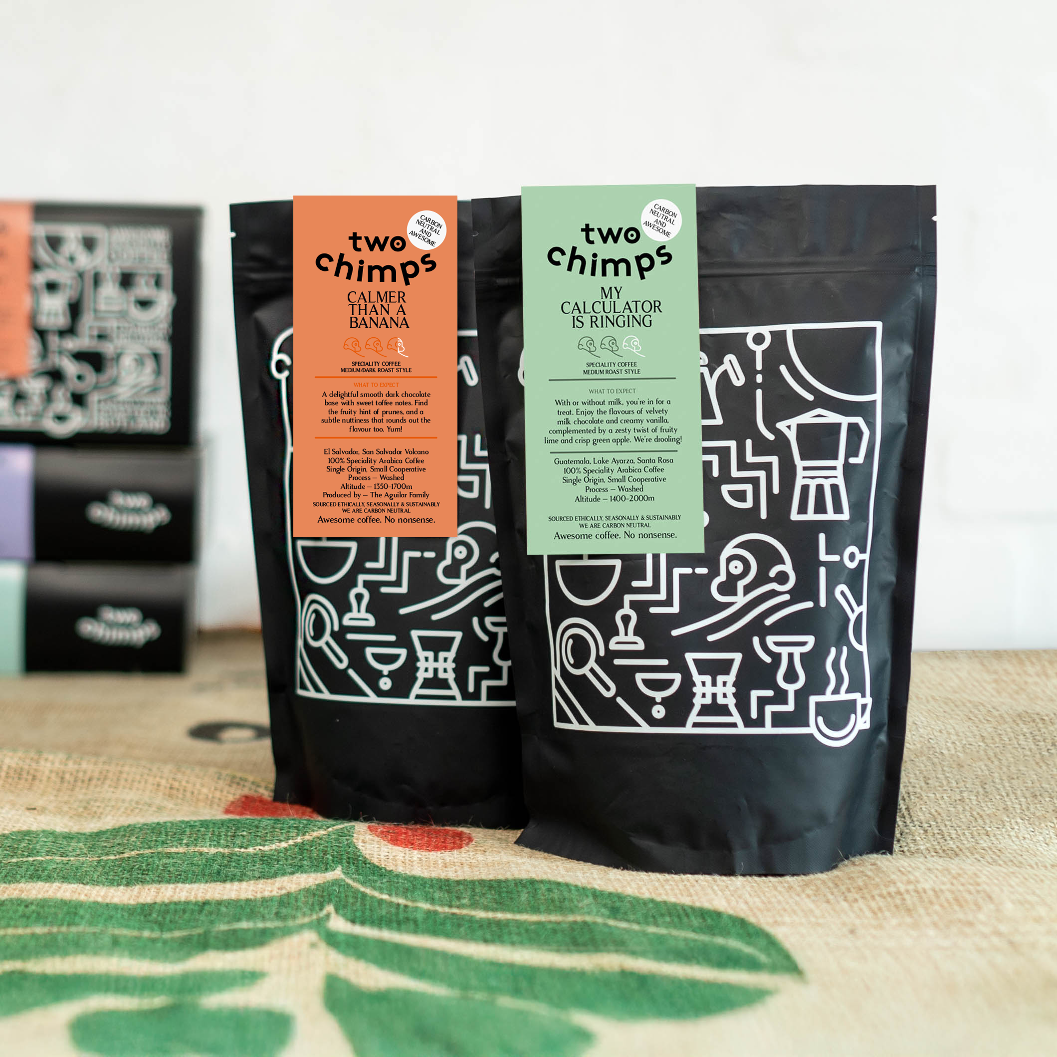 Head Chimp founded Two Chimps alongside Laura in 2016 after being self-employed from the age of 21. He caught the coffee bug from using an at-home roaster, and the rest is history!