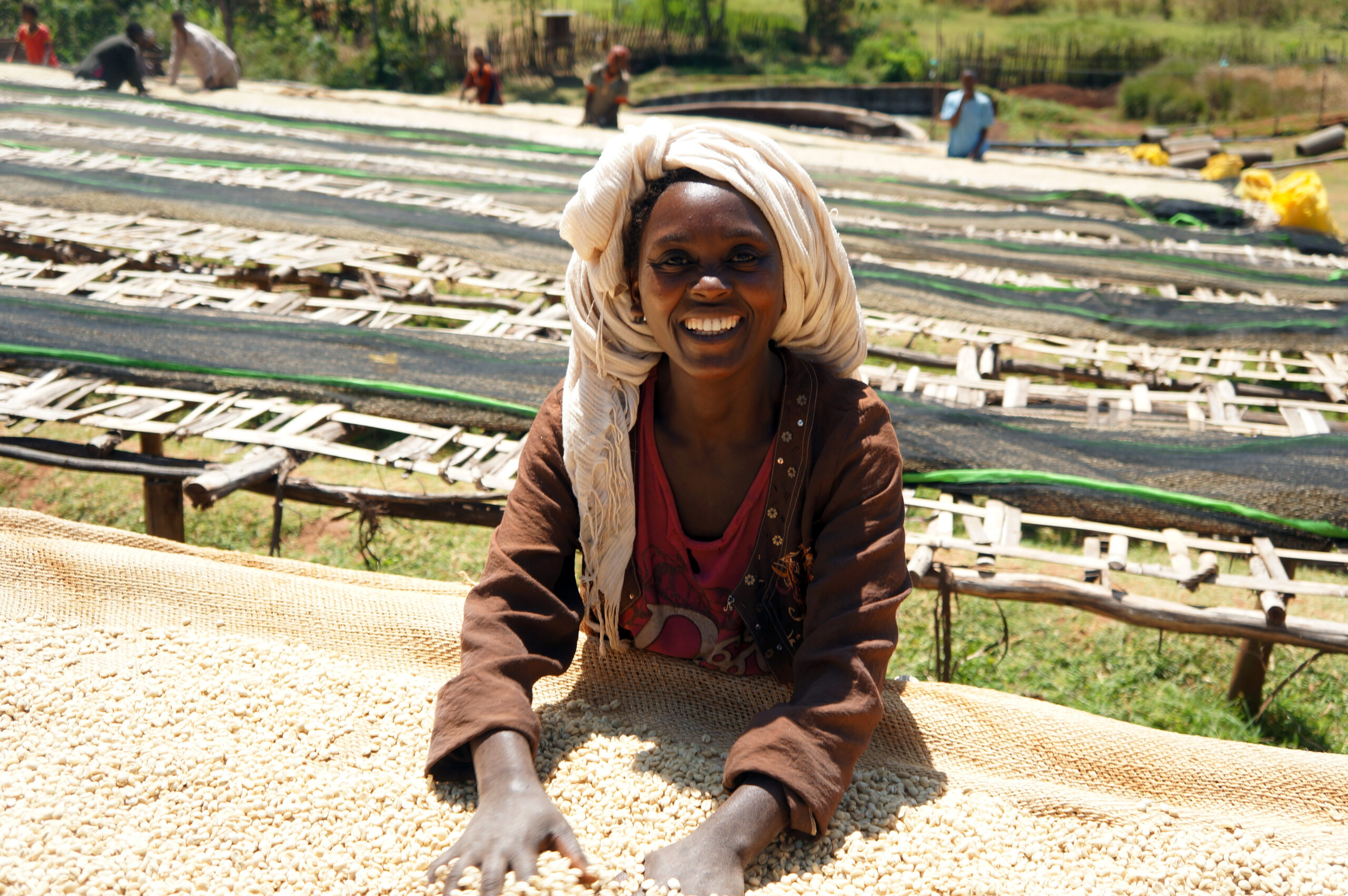 First, the cherries are handpicked at the peak of ripeness, allowing underripe cherries to mature instead of being picked and discarded. In contrast, commodity coffees are often harvested using machinery that strip-picks all the fruit from the branch, regardless of its ripeness. This leads to more waste, as some of this fruit is ultimately discarded.