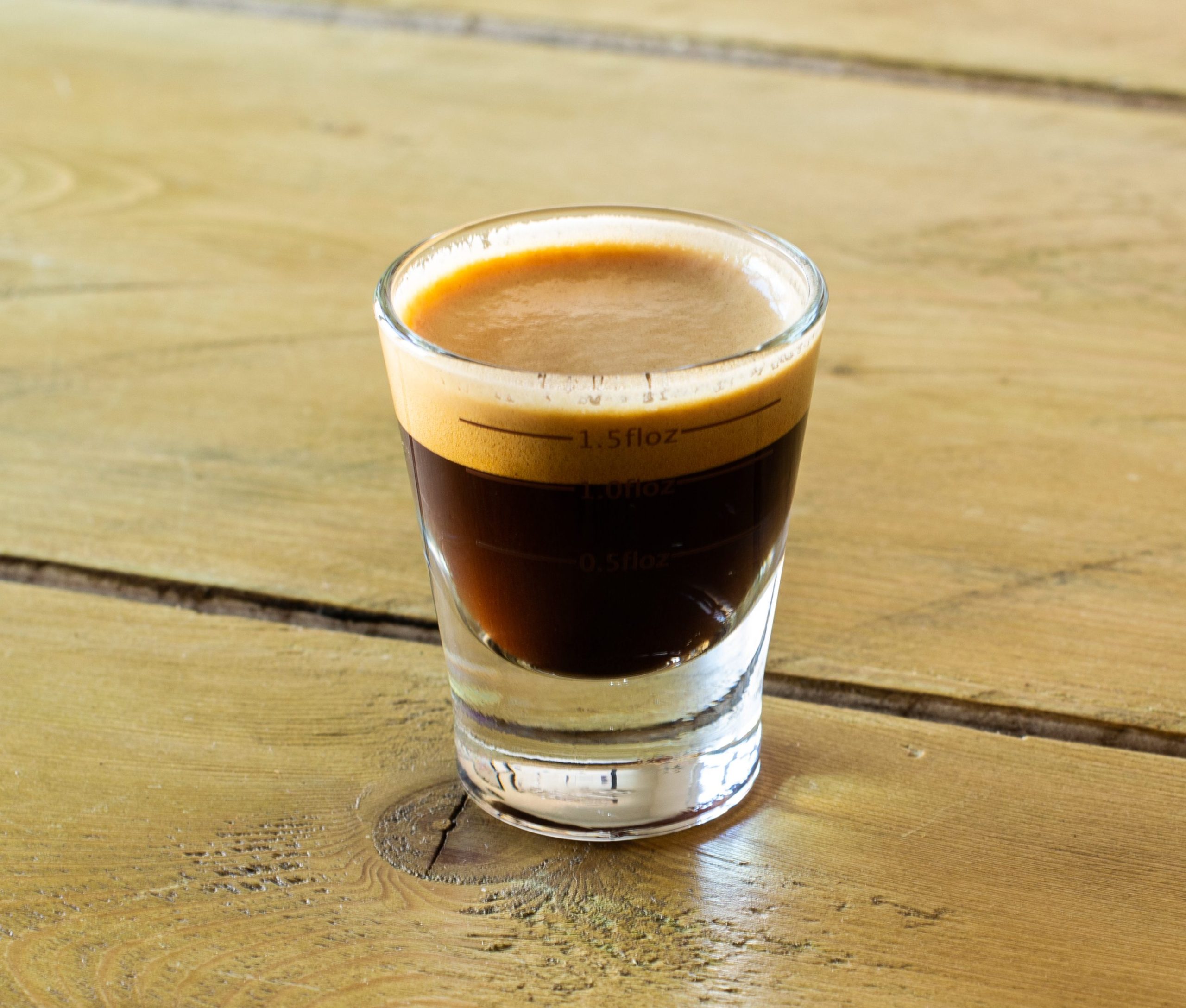 1. Brew a single espresso while you start to steam your milk. (fresh crema is best!)