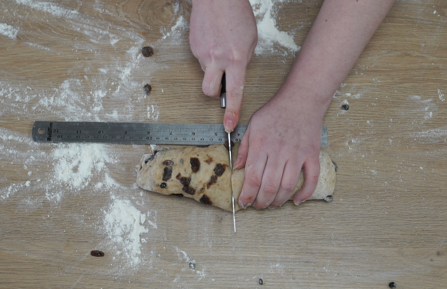 17. Tip the fruit onto the dough and knead to incorporate.