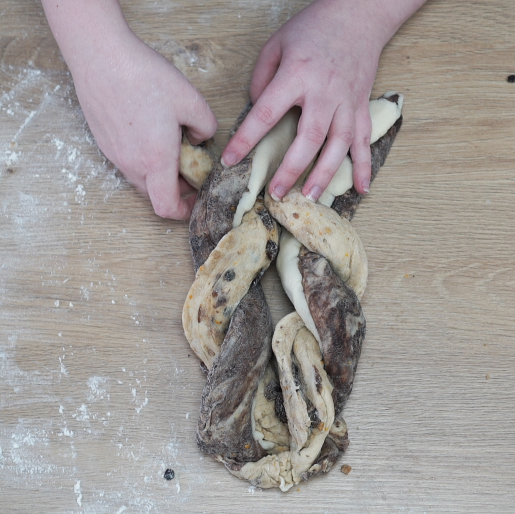 Next up, we have to address the shape. I wanted to push the technical side of this bake (as the dough isn’t hard enough already) and give this braided effect. I think it’s a nice nod to the traditional loaf shape, and it’s the perfect way to ensure you experience all the flavours in every bite. Is your mouth watering yet? Let’s get baking!