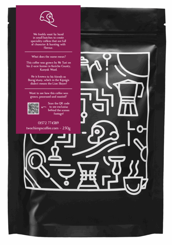 On the label, you’ll discover a QR code that unlocks exclusive behind-the-scenes footage from Mr Tuei’s 2-acre Farm in Kenya. Join him as he guides you through the incredible journey of your coffee – from the moment your beans are hand-picked and washed to the roasting by our artisan roaster.